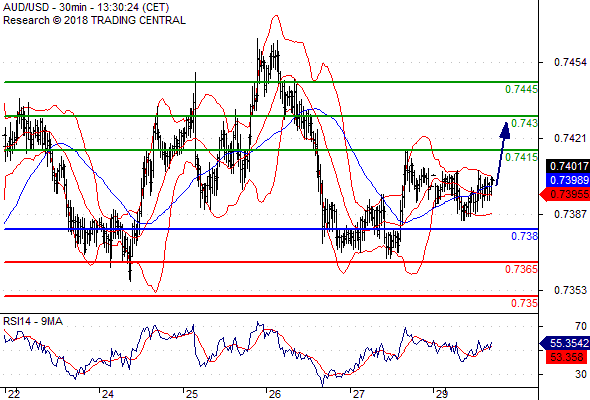 จุดที่ต้องการ: สถานะซื้อสูงกว่า 0.7380 เป้าหมายต่อไปที่ 0.7415 และ 0.7430
