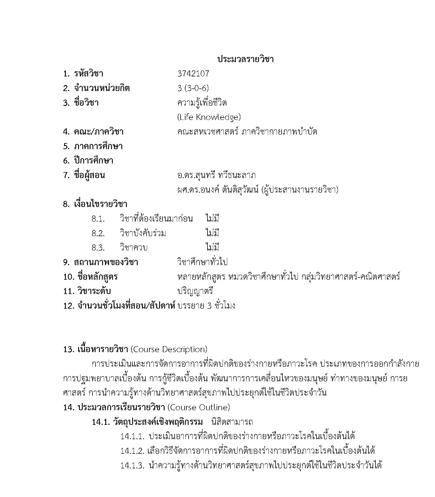 Life knowledge 3742107 GEN-ED CHULA
