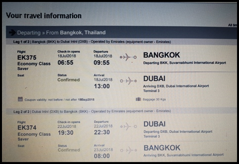 จองตั๋ว แบบ ไป - กลับ ในวันที่ 18/07/2018 - 22/07/2018 ใน ราคา 18,000 บาท Economy class with Emirates Airline ไป Ek375, กลับ Ek374 [บินรวมๆ แล้ว 6 ชั่วโมง เต็มๆ จ้า ]