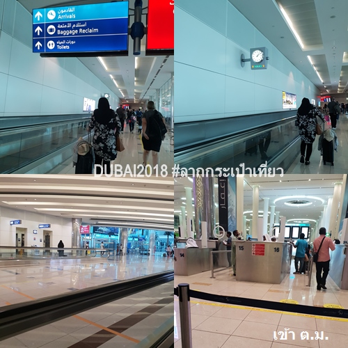ลงจากเครื่องมาก็ สว่างจ้า เลย ถึงตอน 13:00 ตรง ของดูไบ เวลาที่นี่จะช้ากว่าไทย 3 ชม นะ ถึงแล้วก็เข้า ต.ม. ตรวจ คนเข้าเมือง ฮ่ะ สนามบินที่นี่ใหญ่มาก กว้างมาก อลังมาก นาฬิกา Rolex ดู ธรรมดาไปเลยจ้า 5555+ สุดของที่สุดจริงๆ เอ้อ ที่สำคัญ เน็ตฟรี นะ ฟรี ทั้งเมือง อ่านไม่ผิดค่ะ ฟรี จริงๆ ใช้ได้ทุกที่ ตั้งแต่เครื่องบินยันถึง สนามบินเลยจ้า