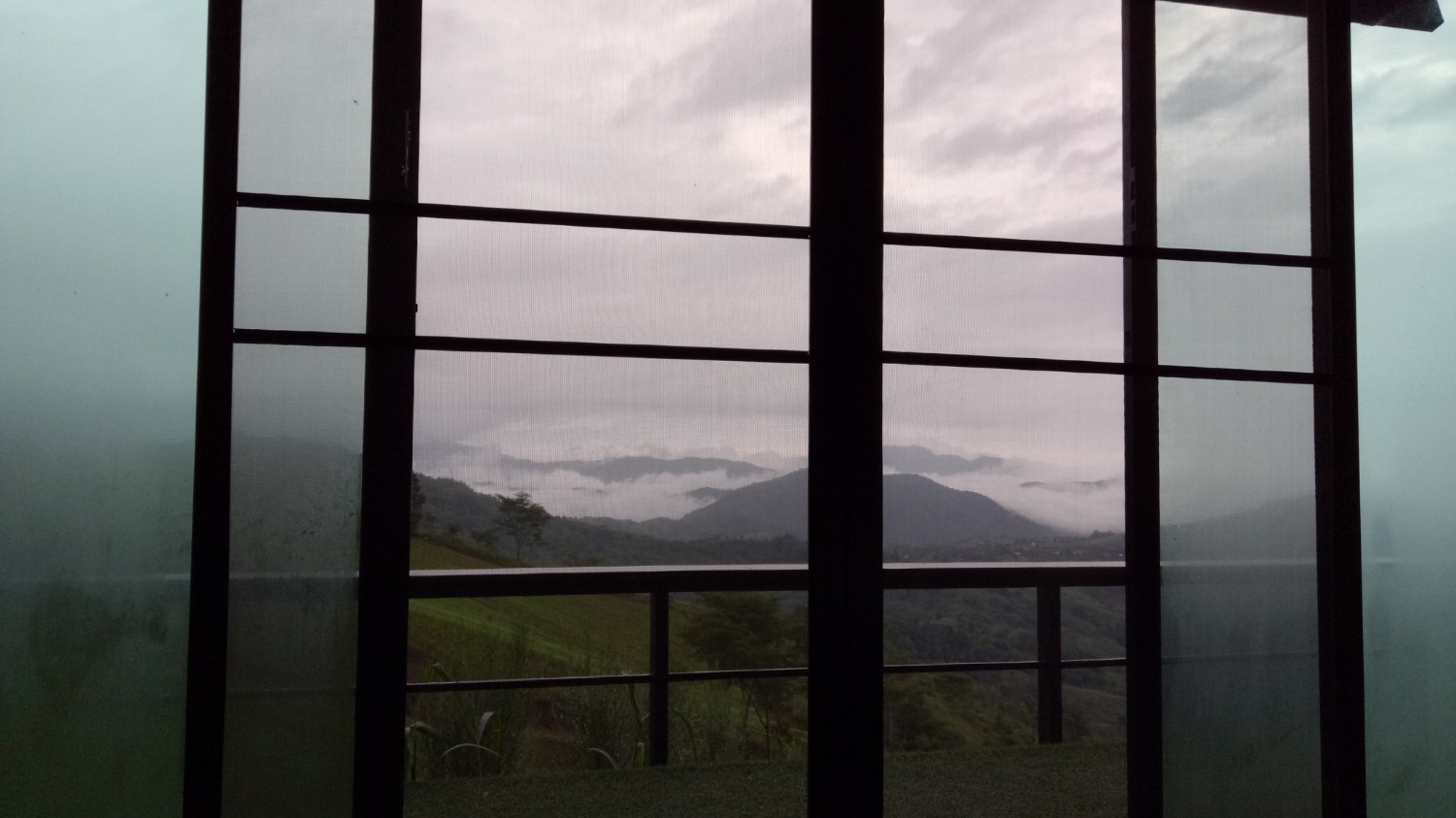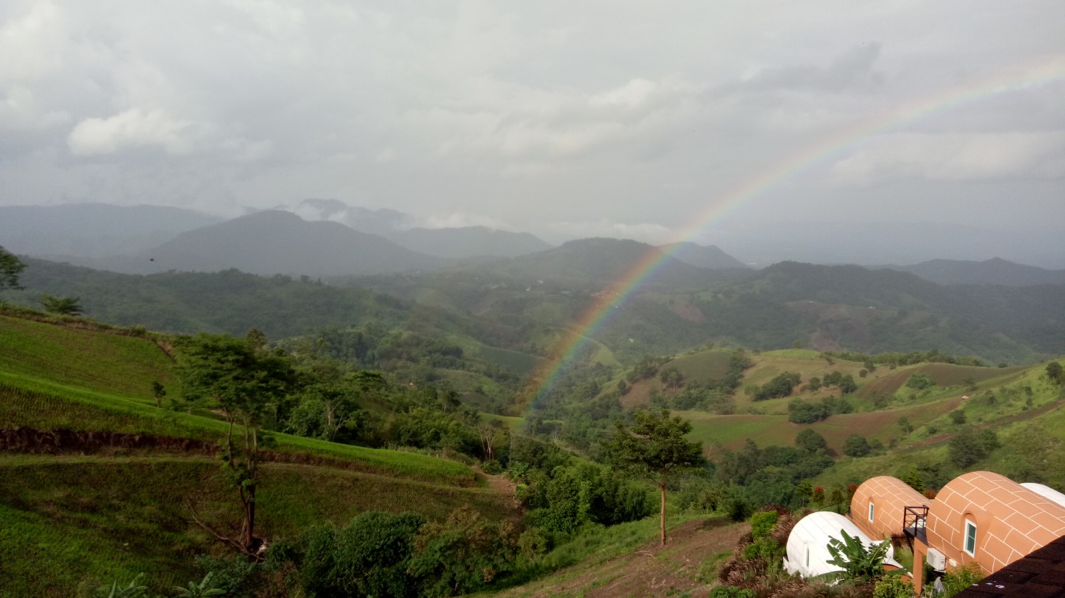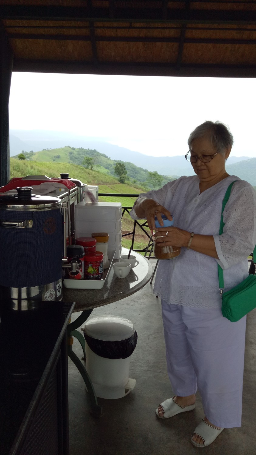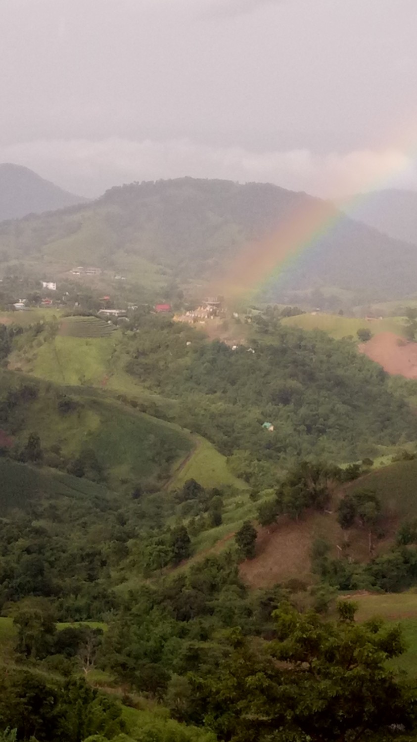 เราติดต่อไปที่รีสอร์ท จนท.เขาขับรถมานำรถเราไปค่ะ ถูกแม่บ่น และ เคือง ว่าใครแนะนำมา คิดว่าจะงานเข้าซะแล้ว มาจอดรถไว้ที่จุดพักรถ มีรถ 4WD ของรีสอร์ทรับขึ้นไปค่ะ เพราะทางชันเป็นลูกรังแถมฝนตกทางแฉะเป็นโคลนเลน เสี่ยงต่อการติดหล่มมาก มีแต่รถไถ กับ 4WD ที่ขึ้นได้ในช่วงนี้ เหลือบตาไปมองหน้าแม่แล้ว ไม่สบรมณ์ เอาซะเลย พอขึ้นไปถึงด้านบน อากาศดีสุดๆ เหมือนหลุดจากพันธนาการทุกอย่างไปอยู่อีกโลกหนึ่ง พอสั่งข้าวเที่ยงมาทาน ... ผ่านค่ะ เข็มอารมณ์ของนาง กลับมาอยู่ที่ 0 อีกครั้ง พอเข้าห้องพัก เพิ่มคะแนนในแดนบวก แล้วค่ะ เราพักกัน 2 คืน ตอนกลางคืนฝนตก เช้าวันที่ 3 จึงมีทะเลหมอกจางๆอย่างที่เห็นในรูป ตอนบ่ายมีละอองฝนปรอยๆน้อยๆ แล้วหยุดพอแดดออกจึงมีรุ้งกินน้ำ ทั้งหมดถ่ายจากกล้องมือถือ