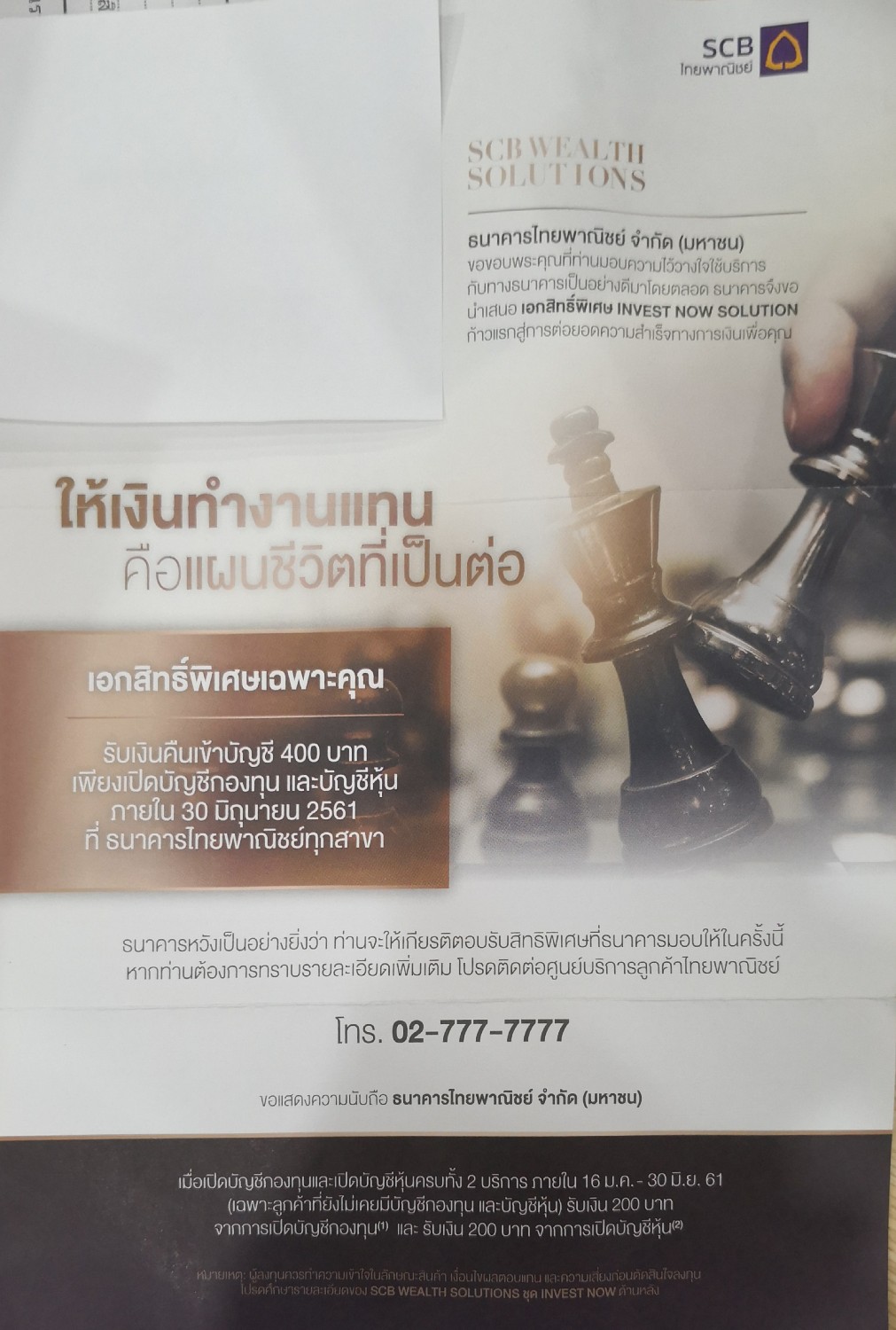 เรียนถาม SCB เรื่อง SCB Wealth Solutions ชุด''Invest Now"