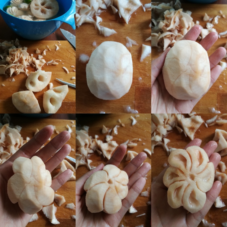 แล้วใช้มีดปอก ปอกเปลือกออกให้หมด โดยปอกให้เข้าไปลึกๆหน่อยนะคะ เนื้อจะได้นิ่ม ขาวสวยค่ะ
