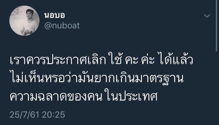 ได้อ่านหลายๆครั้ง หลายๆกระทู้ ไม่เฉพาะในพันทิปนะคะ ในเวปอื่นก็มี เรื่องการใช้คำลงท้าย คะ ค่ะ มีเพื่อนฝรั่งเค้าบอกเราว่า คนไทยใช้คำผิด จะประโยคคำถามหรือประโยคตอบรับใช้ ค่ะ หมด ที่จริงต้องเป็น - ประโยค