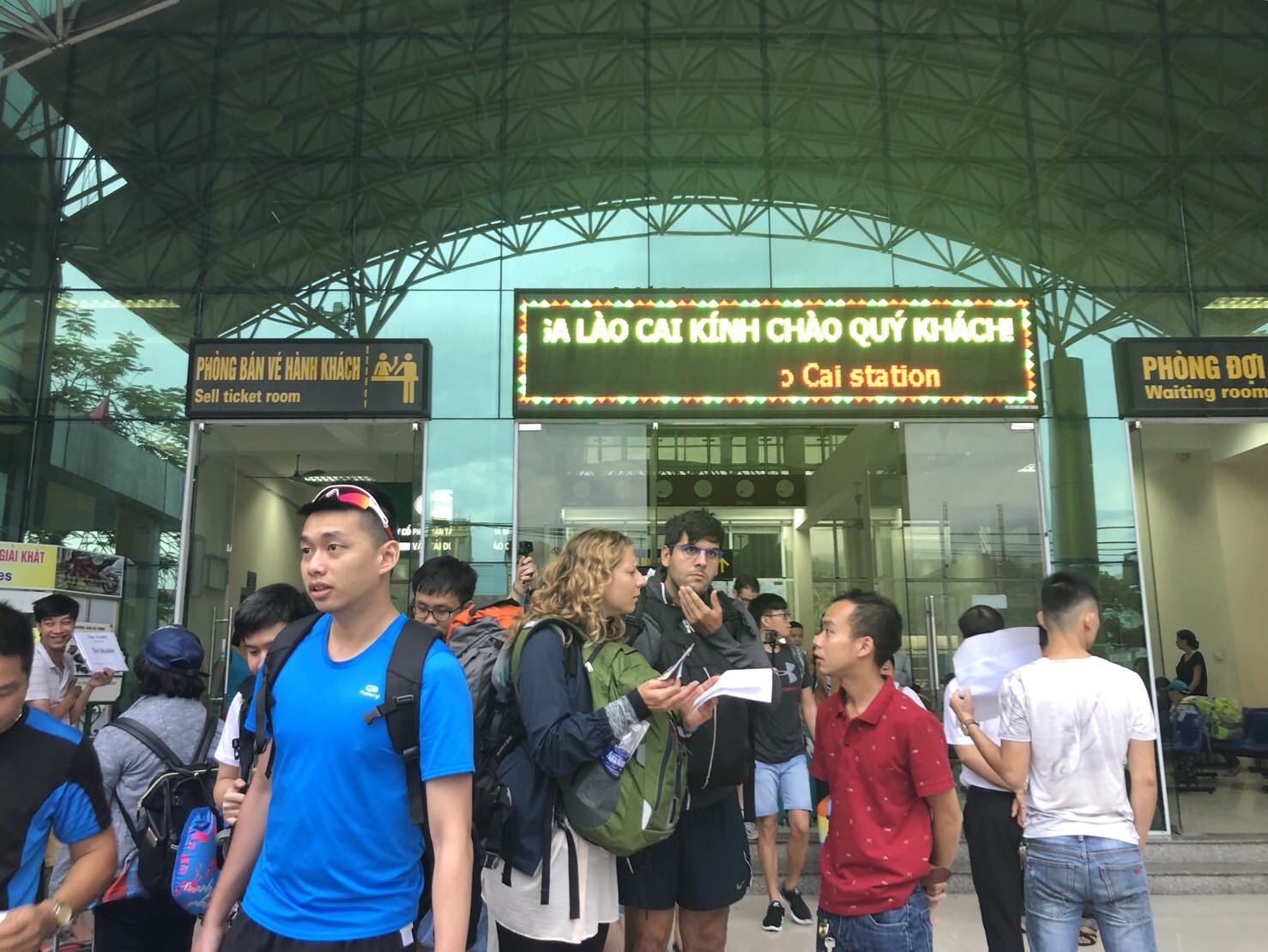 ถึงสถานีลาวไคออกมาหน้าสถานีเราก็มองหาป้ายชื่อเราจ้า. รถที่จะพาเราไปซาปาเป็นรถตู้นะเค้าจะพาเราไปส่งถึงโรงแรมเลย