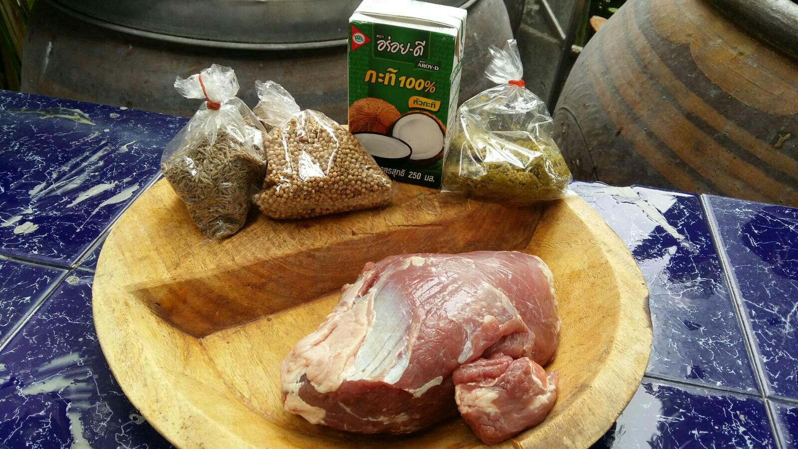 ตั้งกระทะไฟกลางๆ ใส่กะทิส่วนนึงลงไปผัด ไม่ต้องให้แตกมัน ใส่เครื่องแกงเขียวลงผัด(ลองชิมรสเครื่องแกงก่อน จะได้คำนวนตอนปรุงรสได้) ใส่ลูกผักชี ยี่หร่า ที่เหลือ ผัดจนหอมเครื่องแกง จึงใส่เนื้อ และกะทิที่เหลือผัดให้เข้ากันแล้วเติมน้ำเล็กน้อย ลองชิมรสแล้วปรุงรสด้วย น้ำปลา น้ำตาลปี๊บ แล้วปล่อยให้ค่อยๆเคี่ยวไปประมาณ 2 ชม. หากดูแล้วแห้งไปให้เติมน้ำทีละน้อย (บางสูตรที่ดูมาใช้เวลานานกว่านี้) กะว่าน้ำแกงข้น สีเข้ม รสชาติเข้มข้น เนื้อนุ่ม ก็ตักเสริฟกับข้าวสวยร้อนๆ ได้เลย