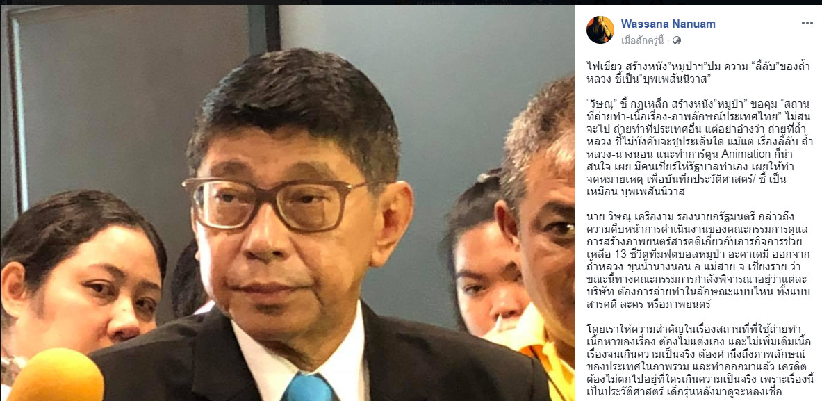 ‘วิษณุ’ เผย รัฐบาลคุมเข้มต่างชาติสร้างหนังหมูป่า แง้ม โปรเจ็กต์ยักษ์ ‘เตรียมสร้างหนังเอง’ วิษณุ’ เผย รัฐบาลคุมเข้มต่างชาติสร้างหนังหมูป่า-ตั้งคณะกรรมการ ดูแลเด็ก และครอบ