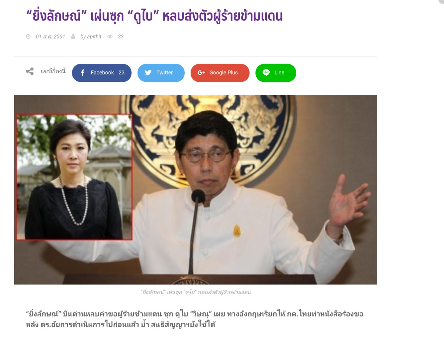 ผู้สื่อข่าวรายงานว่า กระแสข่าวการบินกลับแบบเร่งด่วนมายังนครดูไบของน.ส.ยิ่งลักษณ์ครั้งนี้ เกิดขึ้นทันที หลังจากสถานเอกอัครราชทูตไทยในสหราชอาณาจักร ได้ส่งจดหมายลงวันที่ 5 ก.ค. 61 ที่ผ่านมา ไปยังกระทรวงการต่างประเทศของสหราชอาณาจักร เพื่อร้องขอต่อทางการของอังกฤษให้ส่งตัว น.ส. ยิ่งลักษณ์ ชินวัตร อดีตนายกรัฐมนตรี กลับมาประเทศไทย หลังจากที่ศาลฎีกาแผนกคดีอาญาของผู้ดำรงตำแหน่งทางการเมือง อ่านคำพิพากษาลับหลังและออกหมายจับเมื่อวันที่ 27 ก.ย.ที่ผ่านมา ให้จำคุก น.ส.ยิ่งลักษณ์ เป็นเวลา 5 ปี โดยไม่รอลงอาญา ในคดีปล่อยปละละเลยให้เกิดการทุจริตในโครงการรับจำนำข้าว