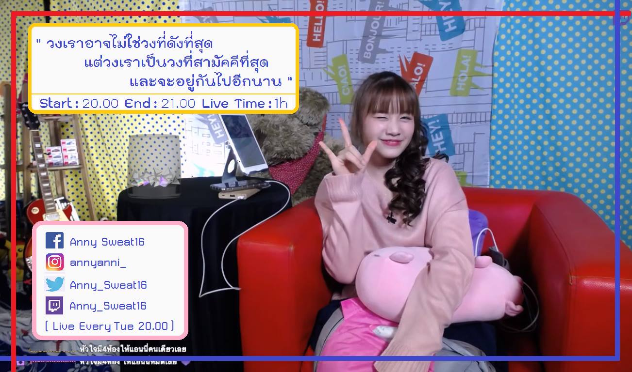 แอนนี่เคยเลาให้ฟัง และนี่ก็เป็นอีกครั้งที่แอนนี่พูดถึงนะครับ ว่าการเป็น Sweat16! มันไม่ง่ายเลย จำเนื้อเพลงญี่ปุ่นไม่ได้จนต้องเอาเนื้อเพลงมาติดที่เคสโทรศัพท์ ติดในห้องน้ำ และทุกๆที่เพื่อให้ได้อยู่กับมันตลอดเวลา มันเหนื่อยนะ แต่ทุกๆครั้งที่เราได้เจอแฟนคลับ มันหายเหนื่อยและเหมือนได้รับการรักษาเยียวยา เหมือนกับเราตกอยู่ในหลุม แต่ก็จะมีแฟนคลับทุกคนช่วยกันดึงขึ้นมา และคนที่ดึงเราขึ้นก็มาก็เพิ่มมากขึ้นเรื่อยๆด้วย ขอบคุณทุกคนมากเลยนะคะ ....ผมอาจจะพิมพ์สื่ออารมณ์ในไลฟ์ออกมาไม่ได้ แต่ผมอยากส่งกำลังใจนี้ให้กับทุกๆท่านนะครับ