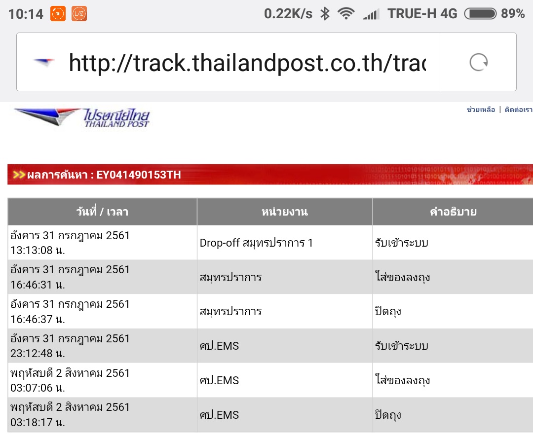 คือของเข้าระบบ 11.21 ปิดถุง 12.11 แล้วไม่ส่งต่อเลยคือนึกว่าส่งในกรุงเทพด้วยกันจะส่งภายในหนึ่งวันคือห่างกันแค่ 4-5 กิโล ไม่ส่งของ เดี๋ยวนี้คือเขาไม่รีบทำงานกันแล้วหรือ