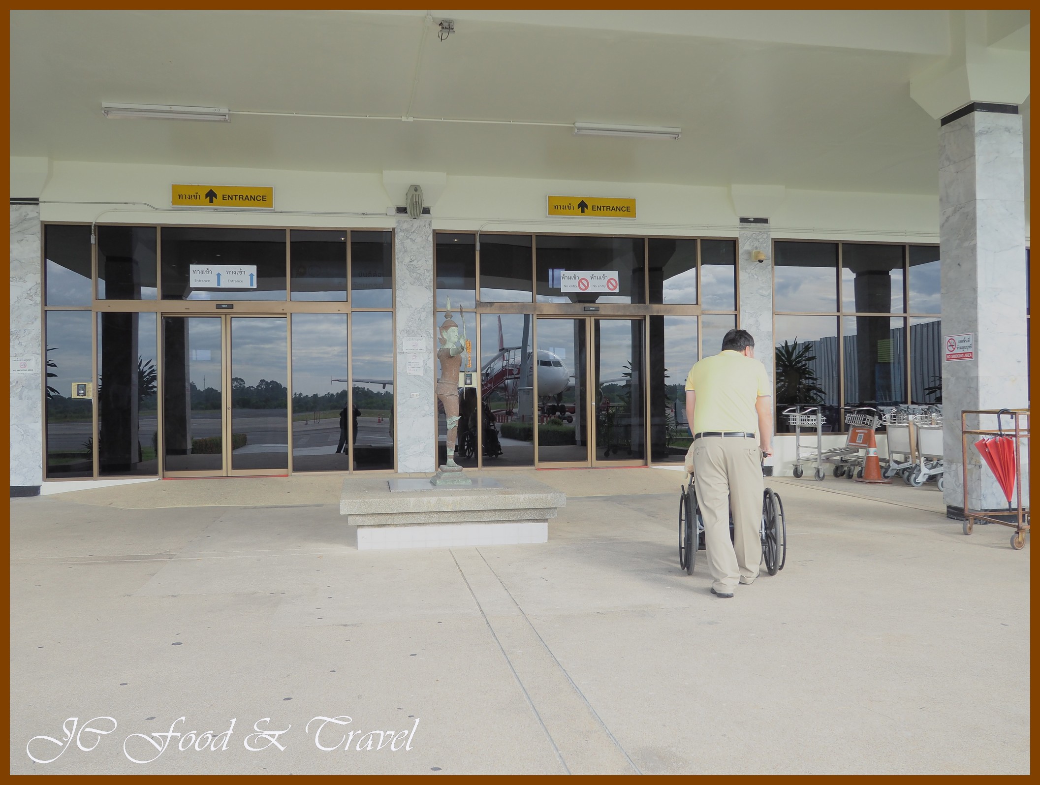 หลังจากขึ้นเครื่องใช้เวลาไม่ถึงชั่วโมงดี เราก็มาถึงที่สนามบินนครศรีธรรมราชครับ รอบขาไปนักบินคนขับเป็นผู้หญิงด้วยครับ ต้องบอกว่า เพิ่งเคยได้นั่งนักบินเป็นผู้หญิง แต่ไม่ทราบว่ารันเวย์ของสนามบินไม่ดี หรือว่าอะไรอย่างไร แต่ตอนลงนี่ กระแทกค่อนข้างแรงเลยครับ ให้ความรู้สึกยิ่งกว่ากำลังนั่งบนรถทัวร์ไปตามถนนลูกรังบนถนน ถึงแม้เราจะใช้บริการเลือกที่นั่ง Hot seat ด้านหน้า ได้ขึ้นเครื่องบินก่อน แต่พวกเราเลือกที่จะลงทีหลังครับ ด้วยเพราะต้องการที่จะรอให้รถเข็นใต้ท้องเครื่องออกมาพร้อมให้ใช้งานตอนลงจากเครื่องบิน และท่านแม่จะได้สะดวกในการค่อยๆเดินลงมาจากบันได ไม่ต้องมีผู้โดยสารท่านอื่นๆ ยืนกดดันรอครับ