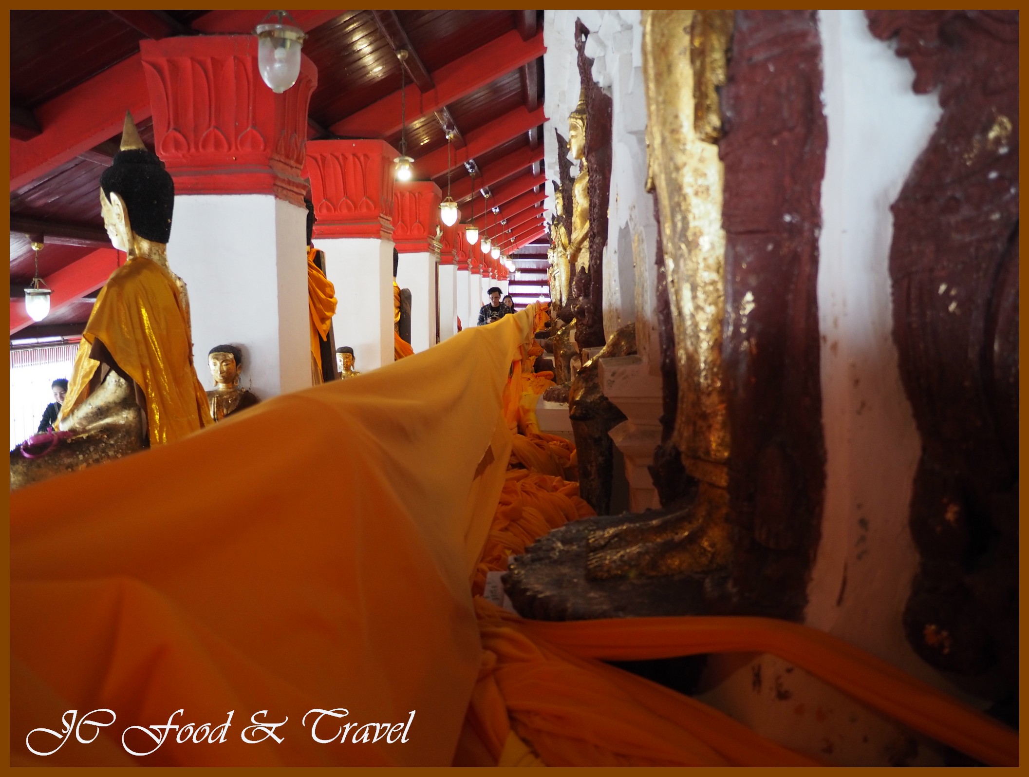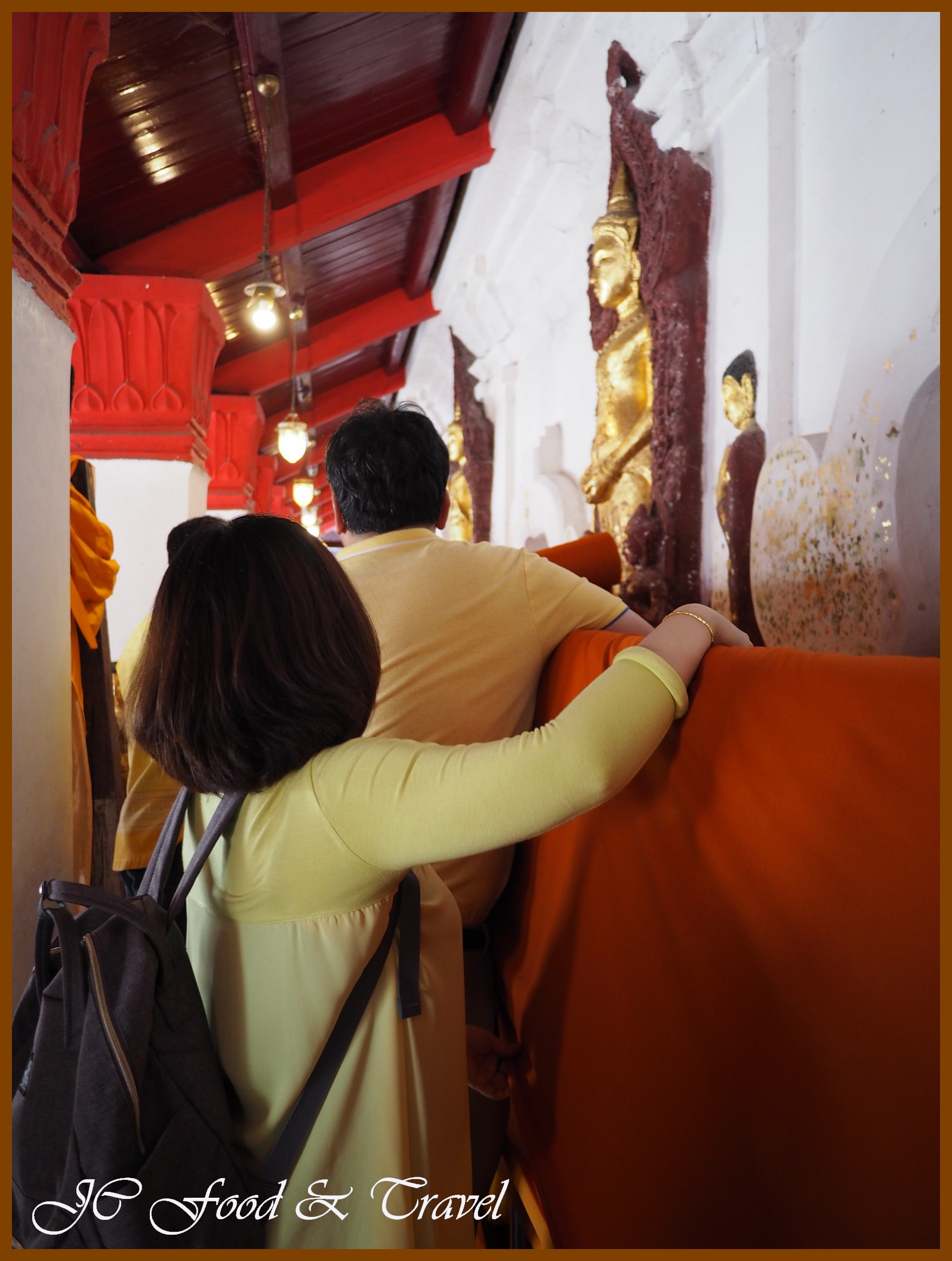 ตรงนี้จะสังเกตุได้ว่า การห่มผ้าที่ฐานพระธาตุ ไม่ต้องใช้เข็มกลัดนะครับ สามารถวางพาดทับด้านบน แล้วเดินวนต่อไปได้โดยรอบฐานพระธาตุ
