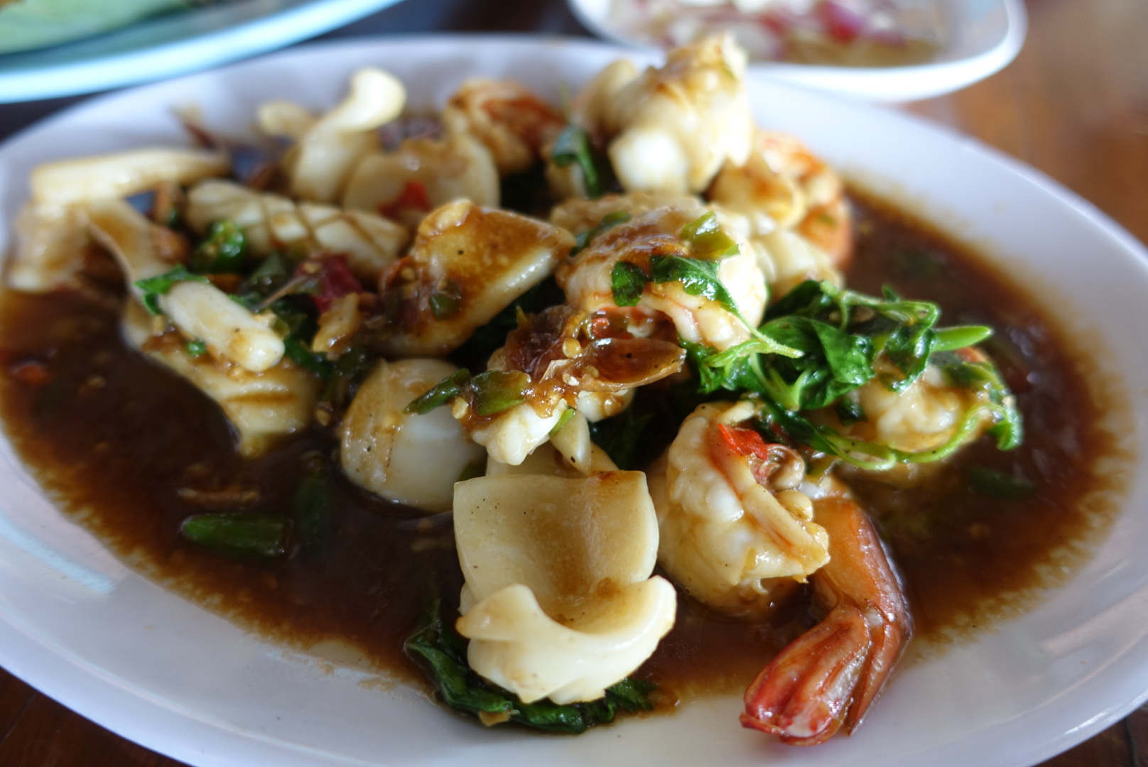 เลยเวลาอาหารเที่ยงมานานล่ะหิวข้าวกันมาก ขอต่อช่วย ให้อากู๋ช่วยพาไปหาร้านอาหารที่ใกล้ที่พักที่สุด พวกเราเลือก “บางเสร่ซีฟู้ด”