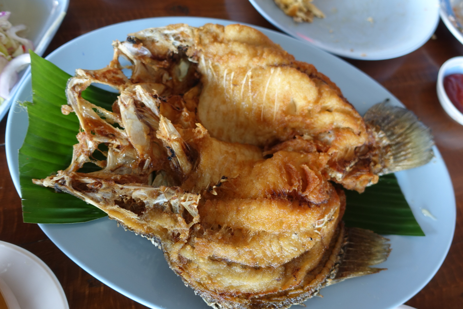 ปลากระพงทอดน้ำปลา สด หอม กรอบนอกนุ่มใน