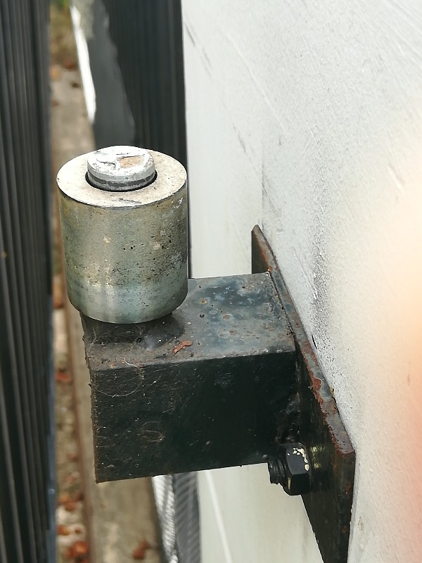 ประตูรั้วหน้าบ้านมันฝืดครับเนื่องจากลูกกลิ้งบนที่ประคองรั้วมันไปถูกับรางบนตามภาพคือ มันเลื่อนได้แต่หัวลูกกลิ้งมันถูตลอดเลย ฝืดกับมีเสียงเอี๊ยดๆ ตัวลูกกลิ้งจริงๆปรับได้แต่ช่างที่สร้างบ้านดันเชื่อมน๊อตติดกันไปแล้ว