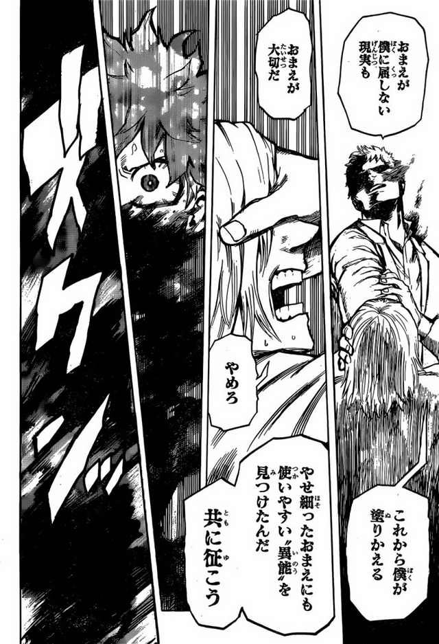 -ความฝันของมิโดริยะก็จบลง แต่ก็จบนั้นเขาเห็นภาพ one for all ขอร้องมิโดริยะให้หยุดเรื่องร้ายๆ ของ all for one ที่เป็นแบบนี้ด้วย ที่จริงเขาอยากให้มิโดริยะเห็นภาพในความทรงจำมากกว่านี้แต่มิโดริยะยังใช้พลัง one for all แค่ 20%เท่านั้น