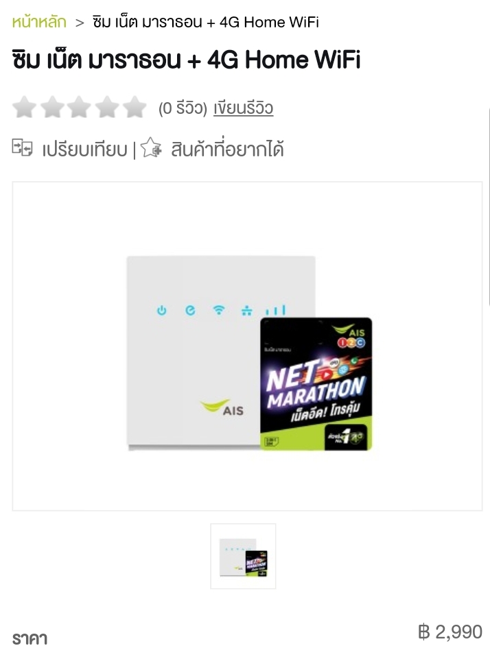 เล่นทวิตเตอร์แล้วเจอโฆษณา AIS 4G Home Wifi ใน AIS Online Store มีแถม SIM NET MARATHON Speed 4 Mbps ในราคา 2,990 ปกติผมเห็นเค้าขายเฉพาะ SIM 2,500 ก็เลยซื้อมาลองเล่น ปรากฎว่าใช้ๆไป ก็ใช้ได้สักระยะน