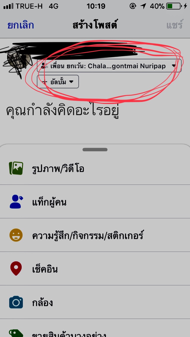 การตั้งบล็อคเฟสบุ๊คไม่ให้บุคคลอื่นเห็นสเตตั้สของเรา