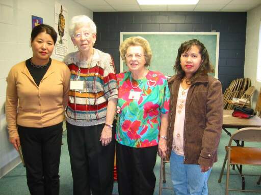 แม่กับครูฝรั่งสอนภาษาอังกฤษที่โบสถ์และเพื่อนร่วมชั้นที่เป็นชาวเกาหลี