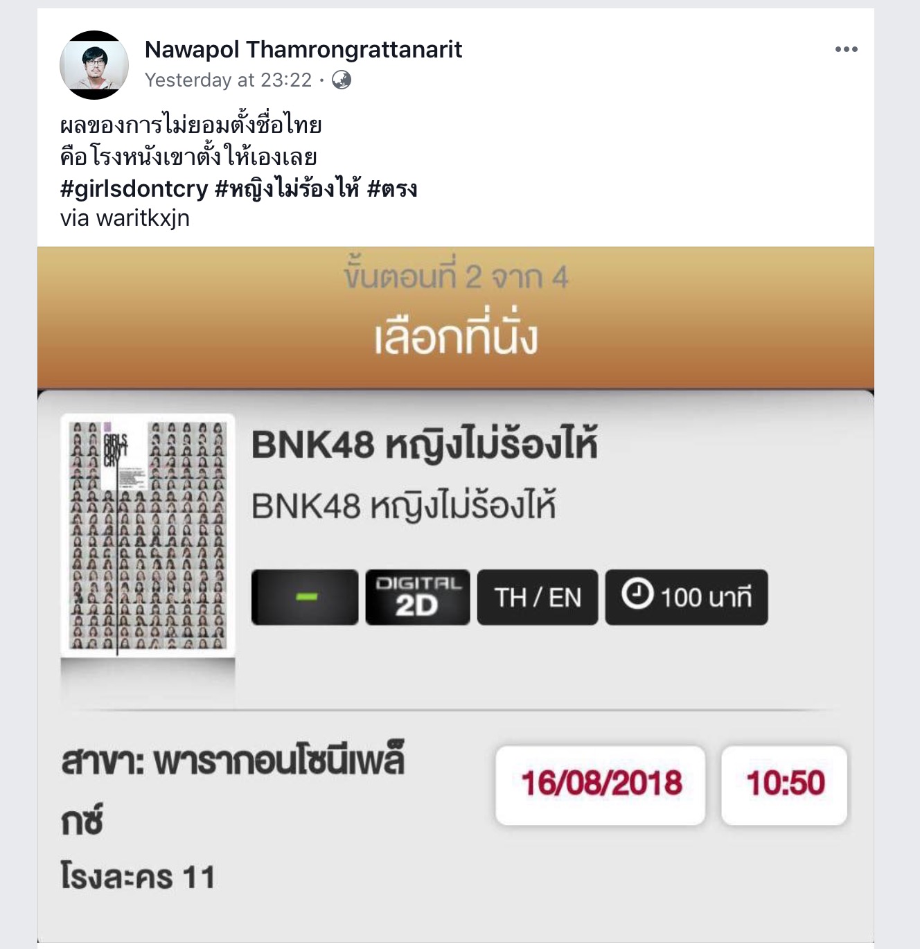 # ผู้กำกับหนัง เต๋อ นวพล เปิดเผยชื่อเรื่องภาษาไทยของหนัง Girl dont cry อย่างเป็นทางการ ถถถ