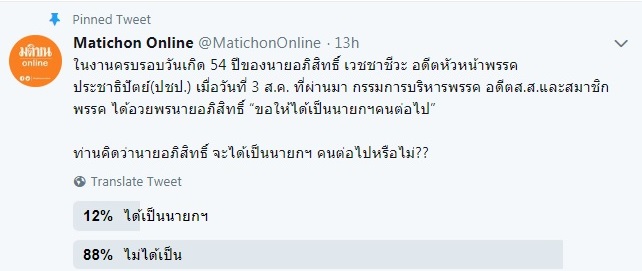 ขณะที่ร้อยละ 12 มองว่า จะได้เป็นนายกฯ คนต่อไป