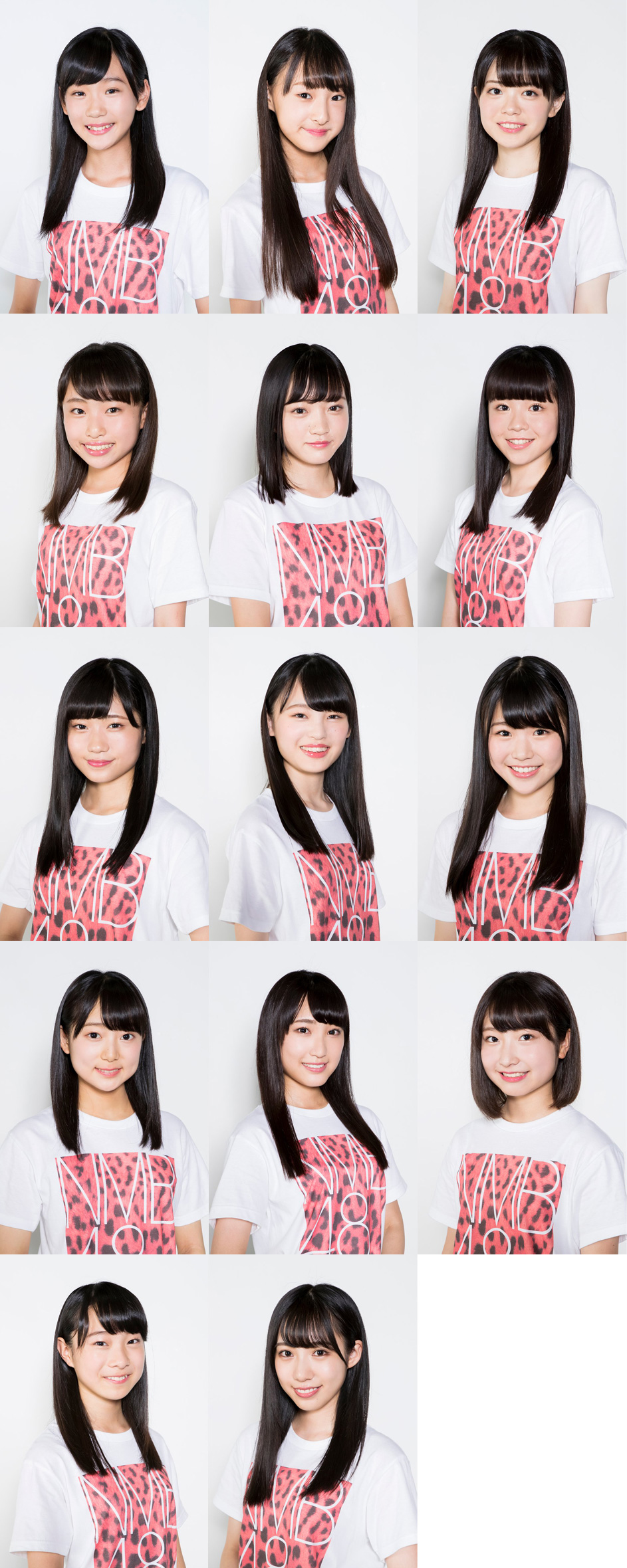 แถวหลัง จากซ้ายไปขวา : Shinzawa Nao, Deguchi Yuina, Nanba Hinata, Hara Karen, Horinouchi Momoka, Miyake Yuria, Yokono Sumire