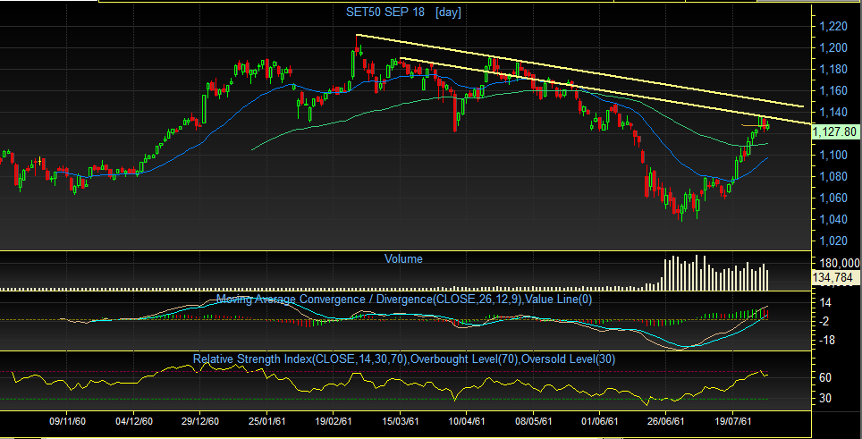 ผ่านแนวต้านสำคัญได้ ก็มีโอกาสกลับขึ้นไปทดสอบระดับ 1200 จุด อีกครั้ง //แต่ถ้าหากหลุดเส้น EMA25 วัน ลงมา มีโอกาสที่จะพักตัว