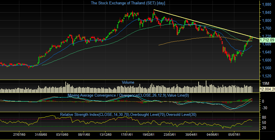 คาดการณ์กันว่า Mr.Powell จะปรับขึ้นอัตราดอกเบี้ยอีกครั้งในเดือนกันยายน ถัดมาวันพฤหัส นับเป็นครั้งแรกของปีนี้ ที่ธนาคารกลางอังกฤษปรับขึ้นอัตราดอกเบี้ย 0.25% มาอยู่ที่ระดับ 0.75% แต่ก็มีคอมเม้นด้วยว่า ในระยะสั้นถัดจากนี้ จะยังไม่มีทีท่าจะขึ้นอัตราดอกเบี้ย อีกปัจจัยที่ยังคงคลุมเครือต่อตลาดหุ้นไทย และ ต่างประเทศนั่นก็คือ Trade War โดยล่าสุดประธนาธบดี ทรัมป์ ได้ปรับขึ้นภาษีนำเข้าจากจีน เพิ่มขึ้นอีก 25% ด้วยปัจจัยต่างๆที่กล่าวมาทั้งหมดนี้ ได้กดดันต่อดัชนี SET index ไม่ให้พุ่งทะยานหวือหวา เฉกเช่นสัปดาห์ก่อน และทำให้วันศุกร์ปิดตัวไปที่ระดับ 1712 จุด +3.81 จุด วันนี้มาติดตามกันต่อ ว่าดัชนีจะสามารถเคลื่อนไหวได้อย่างหวือหวา อีกหรือไม่