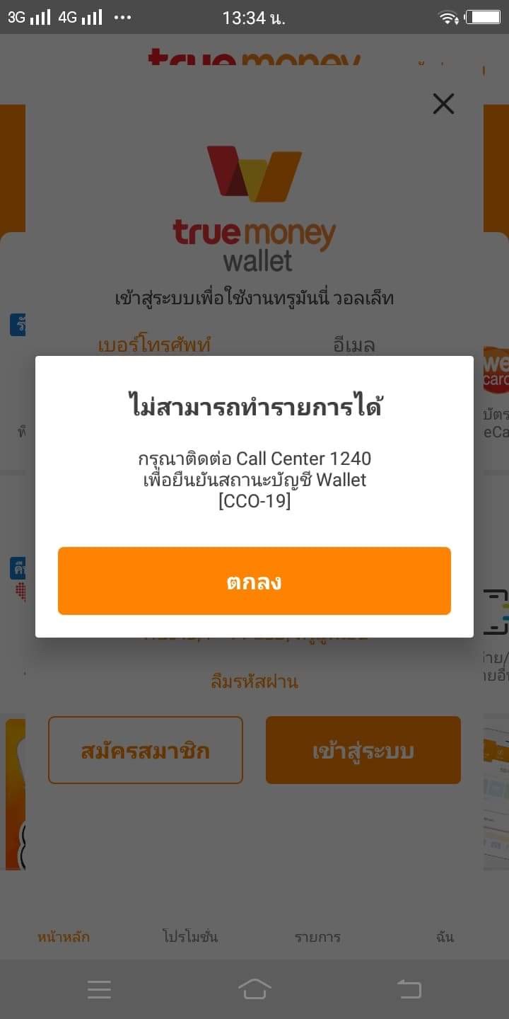true money wallet ใช้งานไม่ได้