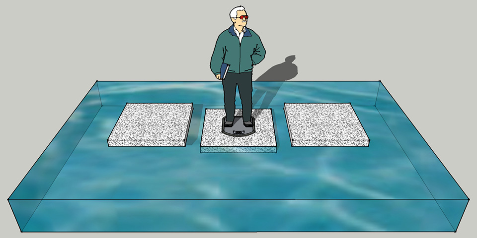 โดยขณะที่ยืนอยู่นั้น แผ่นโฟมจมลง ผิวบนเสมอกับผิวน้ำ พอดิบพอดี