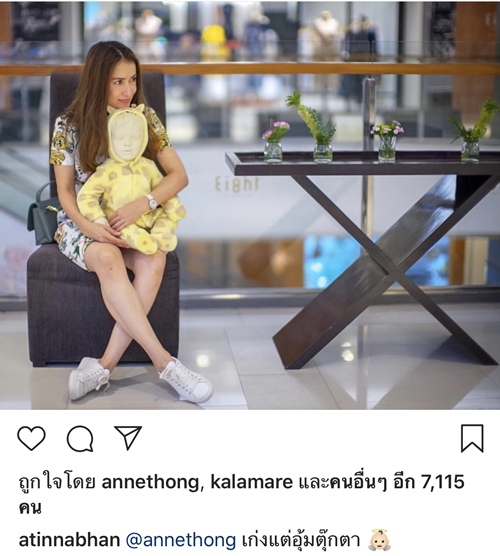 ทำเอาแฟนคลับลุ้นเมื่อเห็นภาพสาว “แอน ทองประสม” ถ่ายรูปอุ้มตุ๊กตา แล้วแฟนหนุ่ม “เอ ทินพันธ์ ตันตินิรันดร์” เข้าไปแซวว่า “เก่งแต่อุ้มตุ๊กตา” ทำเอาแฟนคลับฟิน แล้วแอบลุ้นว่าแผนวิวาห์ที่ทั้งคู่วางไว้อาจจะมีความคืบหน้า ซึ่งสาวแอนบอกว่าแฟนหนุ่มแค่แซวเล่น ยังไม่ได้อยากจะมีลูกจริงๆ