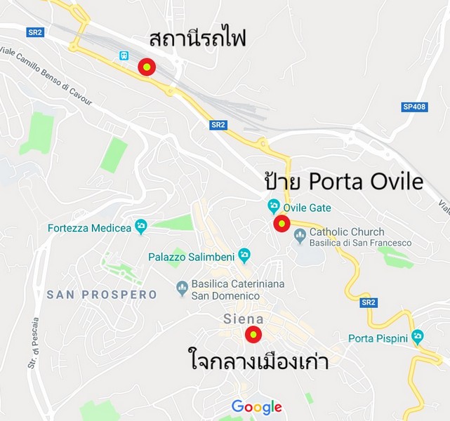 หลังจากที่นั่งรถบัสมาประมาณชั่วโมงกว่าๆ ผมก็เดินทางมาถึงเมือง Siena ซึ่งการเดินทางมาที่เมืองนี้โดยรถบัสจะต้องระวังตอนใกล้จะถึง เพราะว่ารถบัสจะวิ่งไปจอดสองป้าย ก็คือป้าย Porta Ovile ที่จะอยู่ใกล้กับตัวเมืองเก่า กับป้าย Siena – Ferrovia ที่จะอยู่ตรงด้านหน้าสถานีรถไฟหลักของเมือง ซึ่งสถานีรถไฟหลักของเมืองจะค่อนข้างอยู่ไกลจากตัวเมืองเก่า เพราะฉะนั้นถ้าต้องการจะมาเที่ยวเมือง ไม่ได้จะมาขึ้นรถไฟ ก็ควรลงที่ป้าย Porta Ovile ครับ