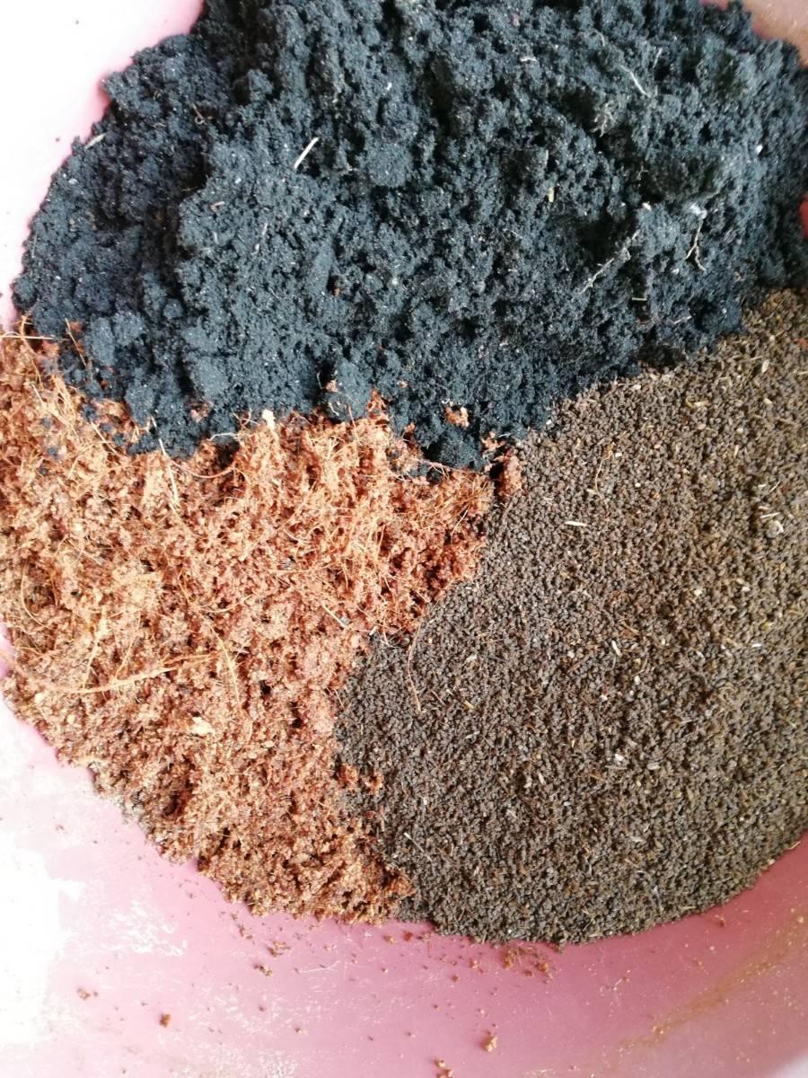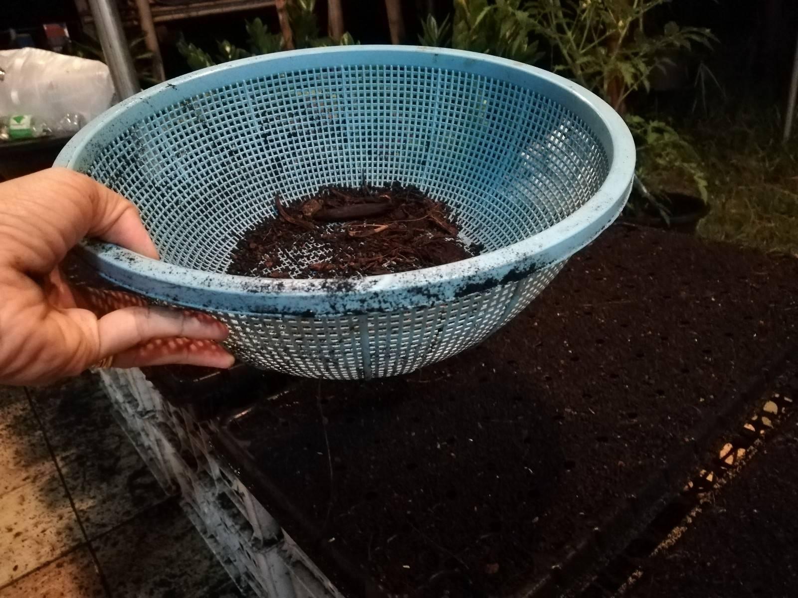 วัสดุเพาะ: มูลไส้เดือน, แกลบดำ, ขุยมะพร้าว อย่างละเท่ากัน หยวนๆ ได้