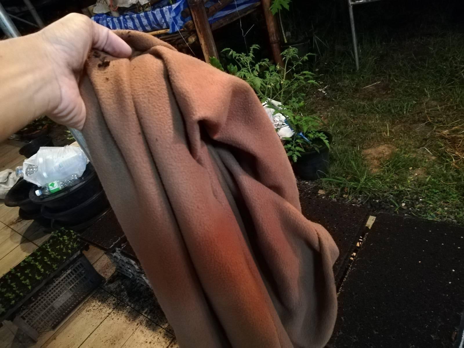 ผ้าห่มเก่าลูก นำมาคลุมถาดเพาะ คลุมเสร็จรดน้ำบนผ้าให้ชุ่มๆไม่แฉะ เพื่อรักษาความชื้น และให้เมล็ดขึ้นเสมอกัน