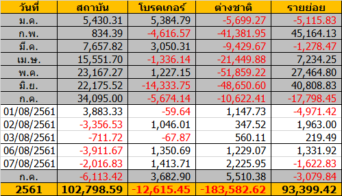 Sinthorn Summary 7/8/2561 : ต่างชาติซื้อสุทธิ 2,225.95 ลบ.