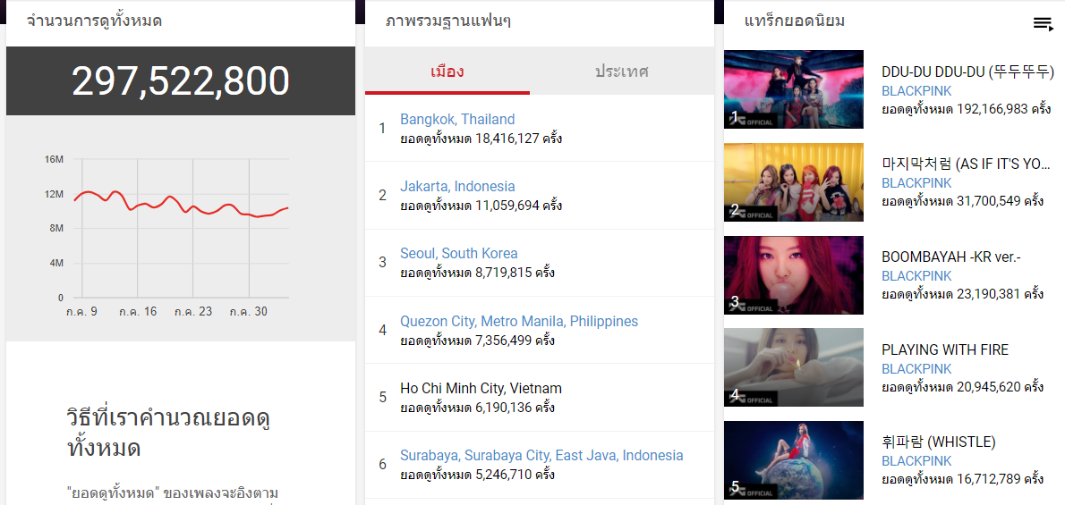Top 10 : Most Streamed Artists across official videos on YouTube 🔸Total views นับหน่วยเป็น Million สถิติรวมจากทุกช่อง official ของศิลปิน 🔸100 M จำนวนวีดีโอที่มียอดวิวมากกว่า 100 ล้านวิว 🔸Avg ค่าเฉ