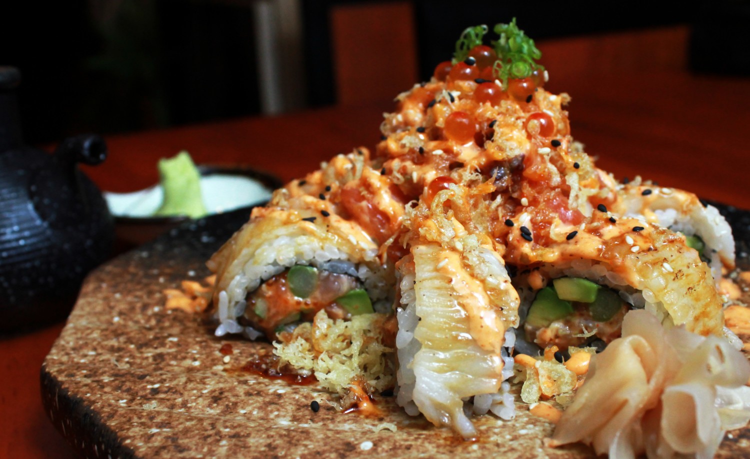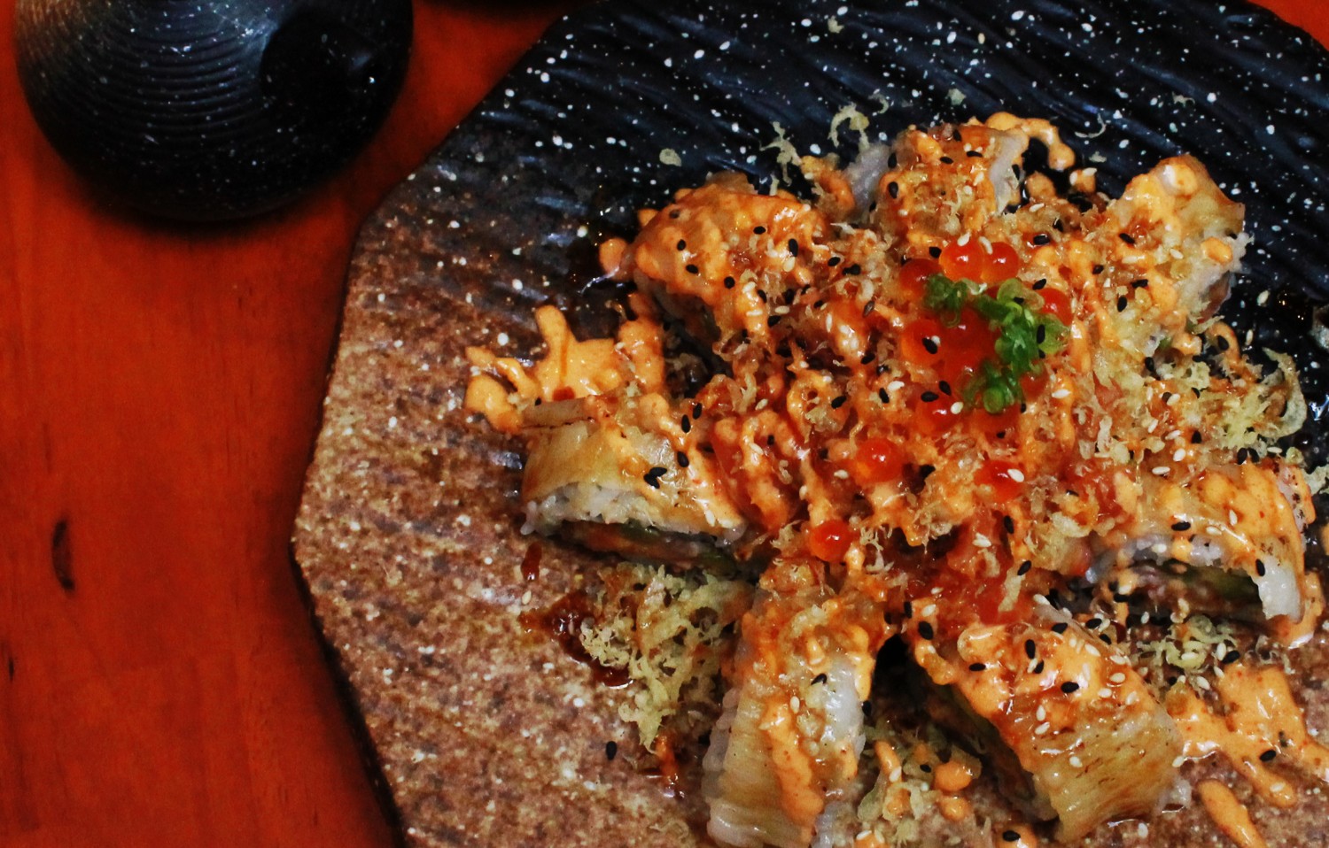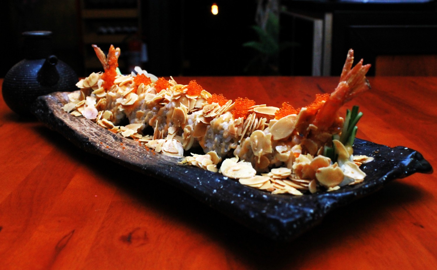 เอนงาวะโรล หรือโรลครีบปลาตาเดียว ออกตัวดังๆ เลยว่านี่คือเมนูโปรดของจ่า เพราะชอบรสปลาที่มีความหวานมันอันเป็นเอกลักษณ์ของครีบปลาตาเดียว ทางร้านจัดไส้ด้านในด้วยเนื้อแซลมอนฉ่ำๆ คลุกกับซอสรสเข้มข้น ส่วนพระเอกอย่างเอนงาวะถูกนำไปเบิร์นไฟแล้ววางเอาไว้ด้านบน ท๊อปด้วยปลาดิบรวมหั่นเต๋าเล็กๆ ราดซอสพิเศษเพื่อตัดความเลี่ยนของเนื้อเอนงาวะได้เป็นอย่างดี เมนูนี้บอกได้สั้นๆ ว่า เอาไป 10 กะโหลก