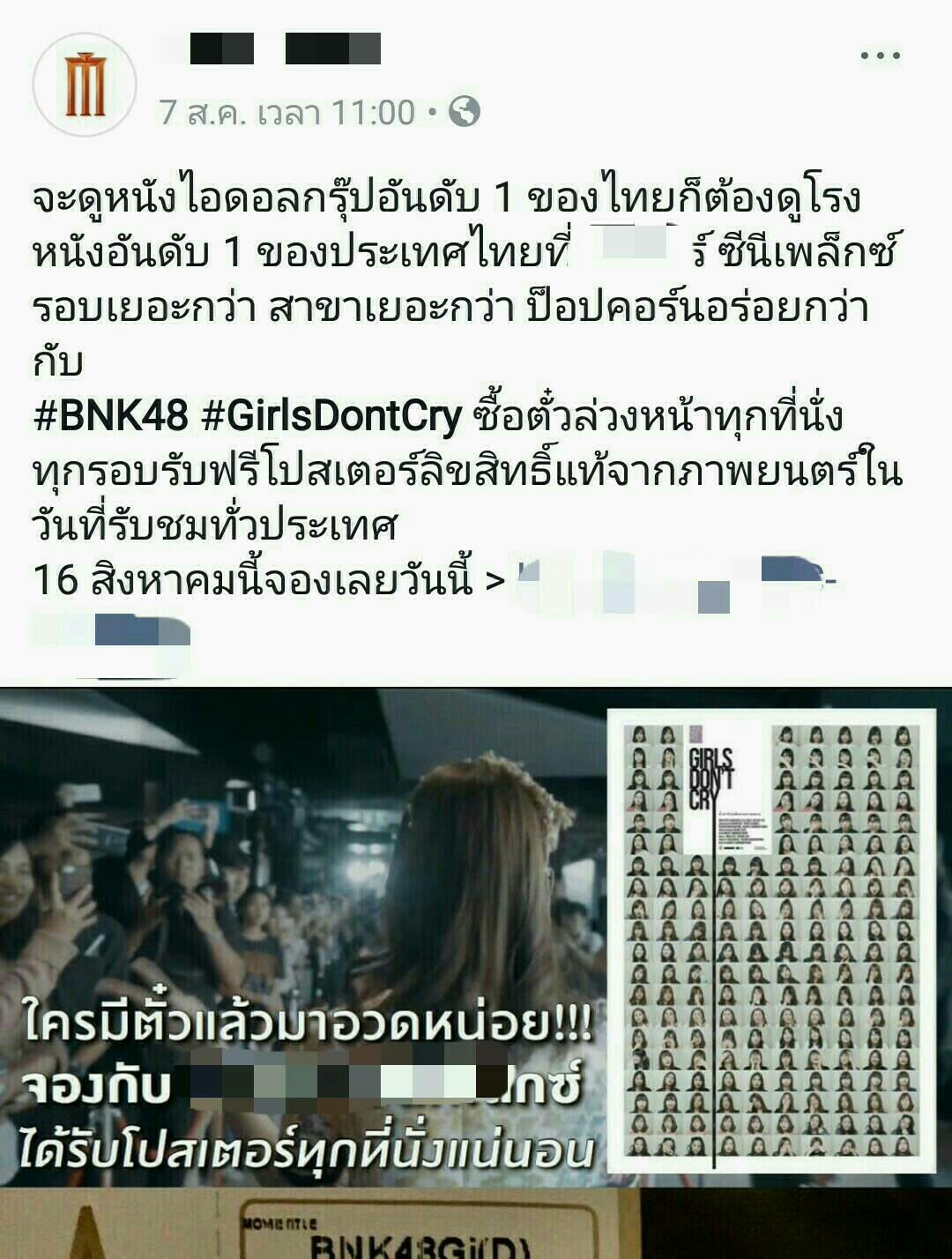 หลังจาก App เมเจอร์ ล่มตอนเปิดจอง Girls Don't Cry เเอดมินเพจ2 โรงนี้ก็บลัฟกัน สาดโปรโมชั่นเเย่งลูกค้ากันเเหลกเลยแฮะ สนุกดี 555 ปกติเห็นเเค่เพจเมเจอร์แซะคนอื่น อันนี้มาโดนคู่เเข่งแซะกลับซะงั้น