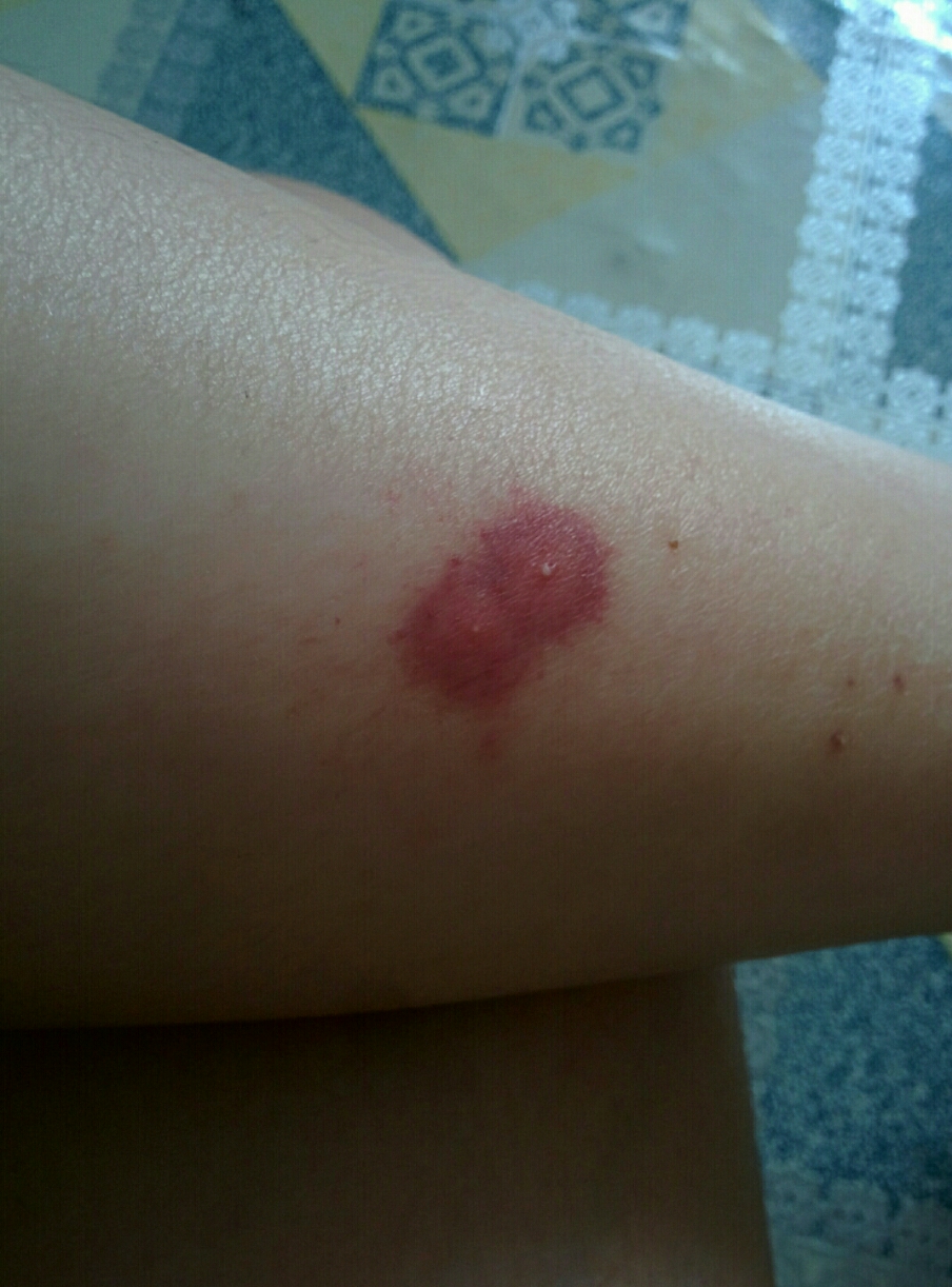 ไม่รู้โดนอะไรกัด นั่งอยู่ที่บ้าน แล้ว รู้สึก จี๊ดดดด ขึ้นมานิด ๆ และก็มัว นั่งทำงาน มาดูอีกที มันเป็นจ้ำแดง ๆ พอวันที่ 2 เริ่มมีหัวขาว ๆ