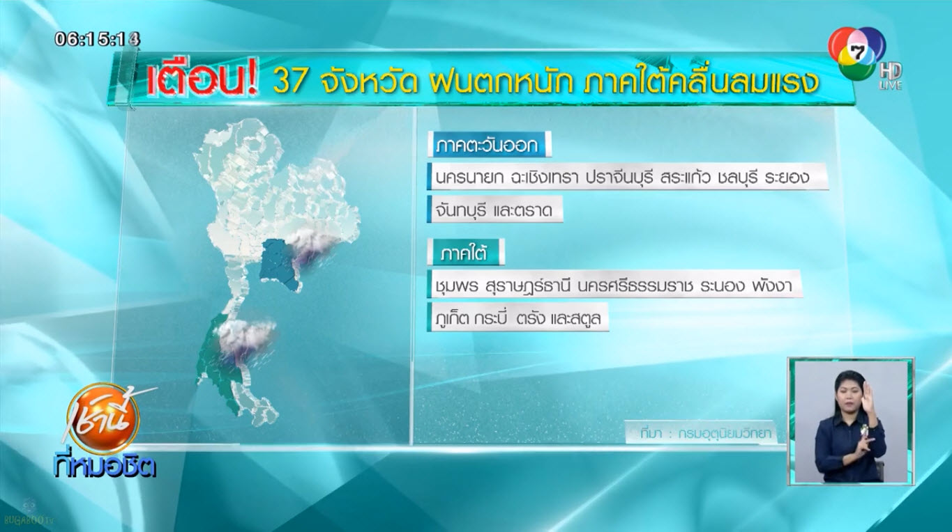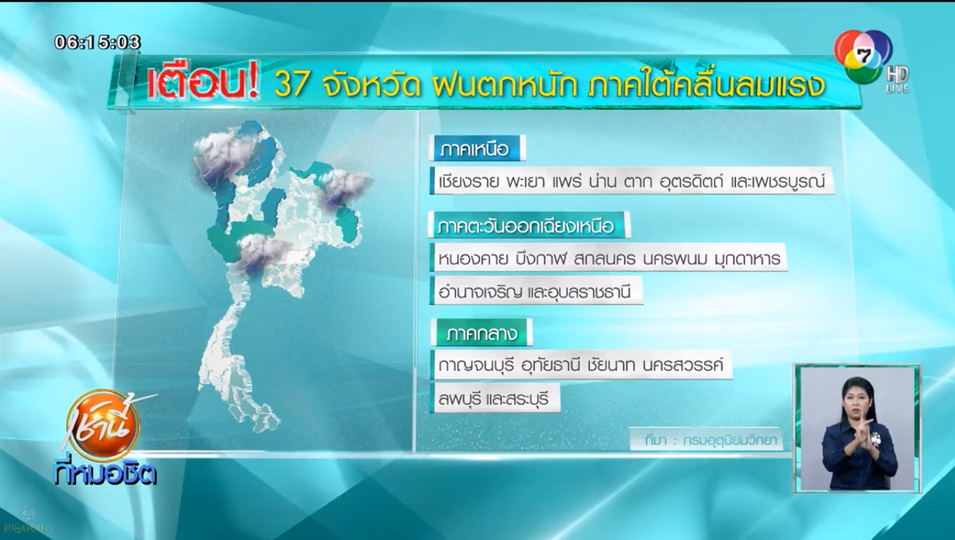 ประกาศกรมอุตุนิยมวิทยา เตือน 37 จังหวัดทั่วทุกภาค ระวังอันตรายจากฝนตกหนัก ส่วนภาคใต้ คลื่นลมแรง สูง 3 เมตร