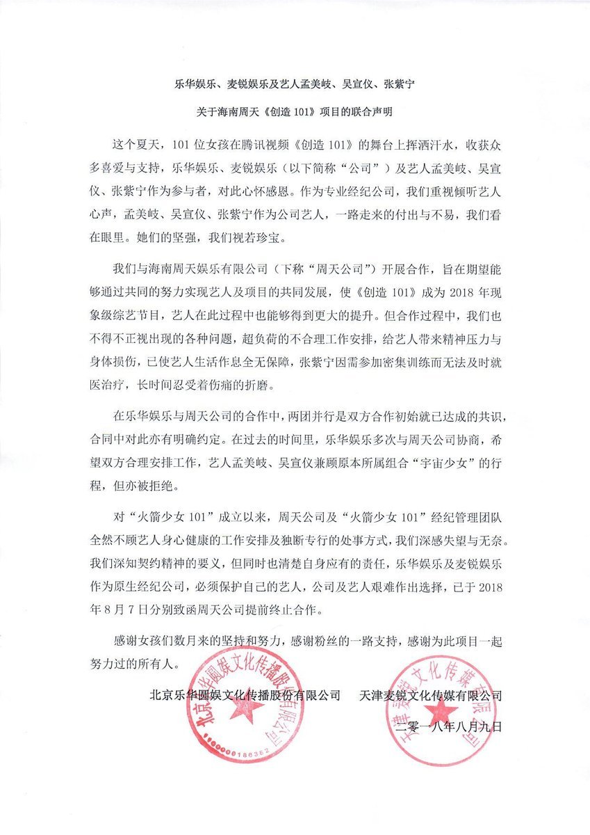 [C/K-POP] Yuehua แจ้งการถอนตัวของ MeiQi และ XuanYi จากโปรเจคกรุ๊ป Rocket Girls