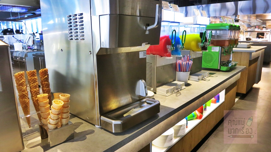ร้านเป็นลักษณะของบุฟเฟ่ต์นานาชาติ แต่ที่ชอบคือ มีสนามเด็กเล่นในร่มให้เด็กๆเล่นด้วย มาร้านนี้ คุณพ่อคุณแม่ได้อิ่ม อย่างสบายใจ ตัวเล็กได้อิ่มและสนุกสนานไปด้วย ไอเดียดีมากๆเลย สนนราคาต่อหัวอยู่ที่ 28 ยูโร (ประมาณ 1120 บาท) สำหรับเด็กๆ คิดราคา1 ขวบต่อ 2 ยูโร (ประมาณ 80 บาท) รวมอาหาร และเครื่องดื่มด้วยนะจ๊ะ ( มีน้ำอัดลม/น้ำผลไม้/นมผลไม้/น้ำเปล่า/โซดา/สเลอปปี้/เบียร์แบบ0%แอลกอฮอร์) หรือถ้าใครอยากดื่ม ไวน์/ เบียร์สด / ชากาแฟ ซื้อเพิ่มแก้วละ 1.5 ยูโร โดยเราต้องซื้อบัตรเข้าไปแล้วใช้บัตรกับเครื่องอัตโนมัติด้านในค่ะ คุณยายเพิ่ม extra wine ไป6 แก้ว