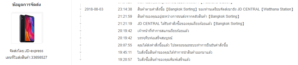เมื่อวันที่ 3 สิงหาคม เวลา 19.20.57 ผมได้ทำการสั่งซื้อ Xioami Mi8 จากทาง JD Central ด้วยหวังว่าจะได้ของแถม เพราะมีโปรโมชั่นว่า Xiaomi Mi8 (128GB) 300 ท่านแรก รับฟรี Xiaomi Huami AMAZFIT Bip มูลค่าถึง 2590 (จำนวนจำกัด) เปิดขายวันที่ 3 สิงหาคม 2561 เวลา 20.00 เป็นต้นไป ขณะที่ผมทำรายการระบบได้เปิดให้ทำรายการได้แล้ว และเนื่องจากเป็นครั้งแรกในการสั่งซื้อกับเว็บนี้ รายการสั่งซื้อผมได้รับการยืนยันเวลา 20.07.55 หลังจากสั่งแล้วสถานะสินค้าในระบบมีการอัพเดทเร็วมาก และแล้ววันถัดมาบ่ายๆผมก็ได้รับของ