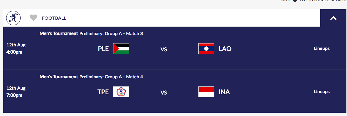 Asian game 2018 ปาเลสไตน์ - ลาว , อินโด - ไต้หวัน