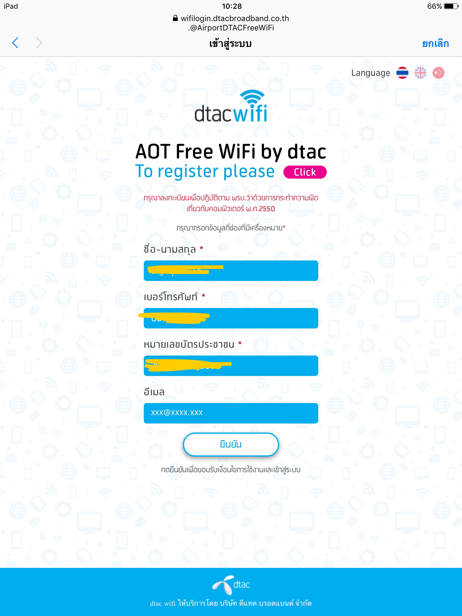 Free wifi ของ ดีแทค ที่สนามบินใช้งานไม่ได้