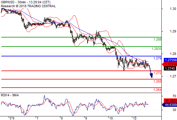 จุดที่ต้องการ: สถานะขายต่ำกว่า 1.2790 เป้าหมายต่อไปที่ 1.2720 และ 1.2680