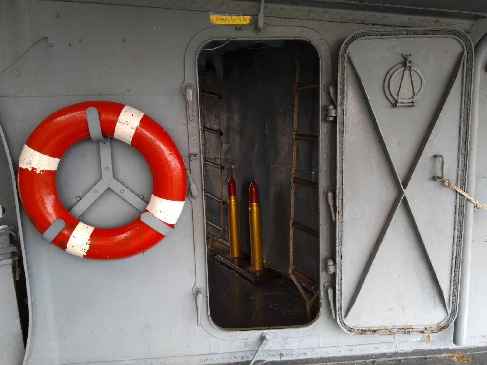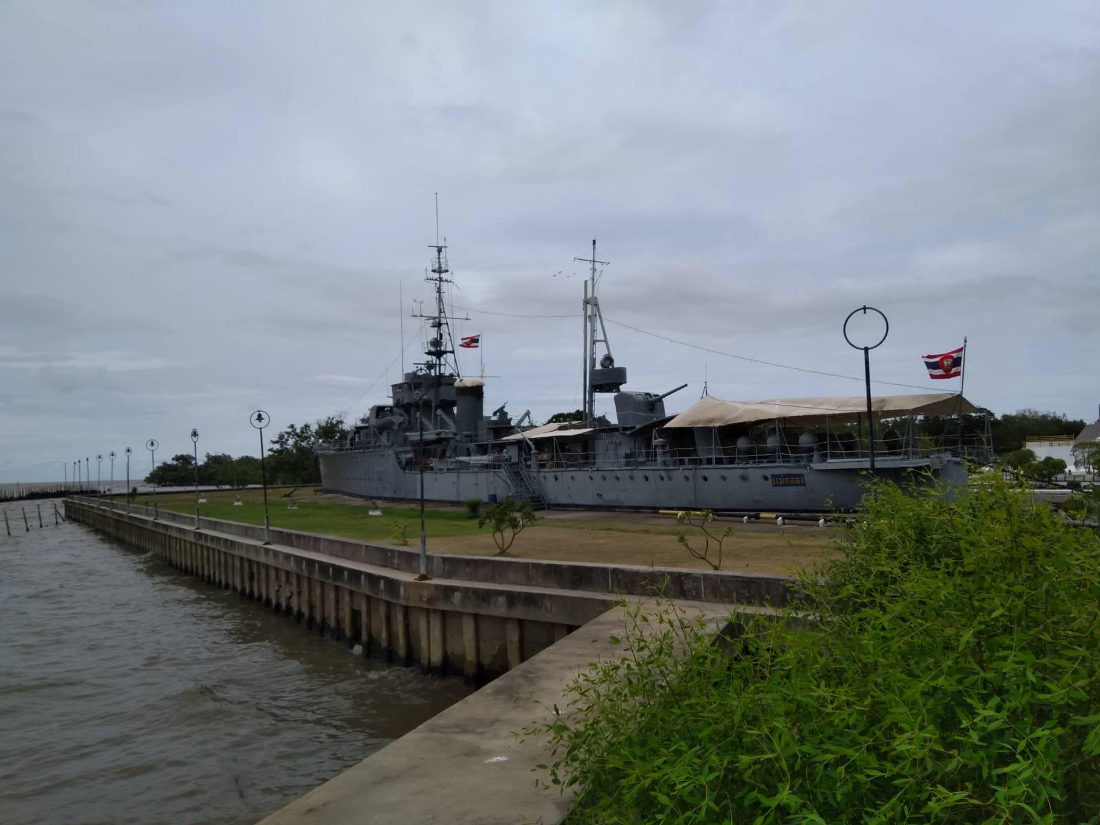 มาต่ิกันที่เรือรบหลวงแม่กลอง ตั้งอยู่ริมน้ำ