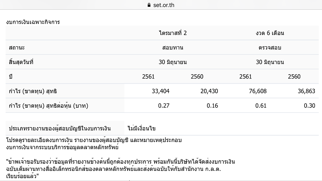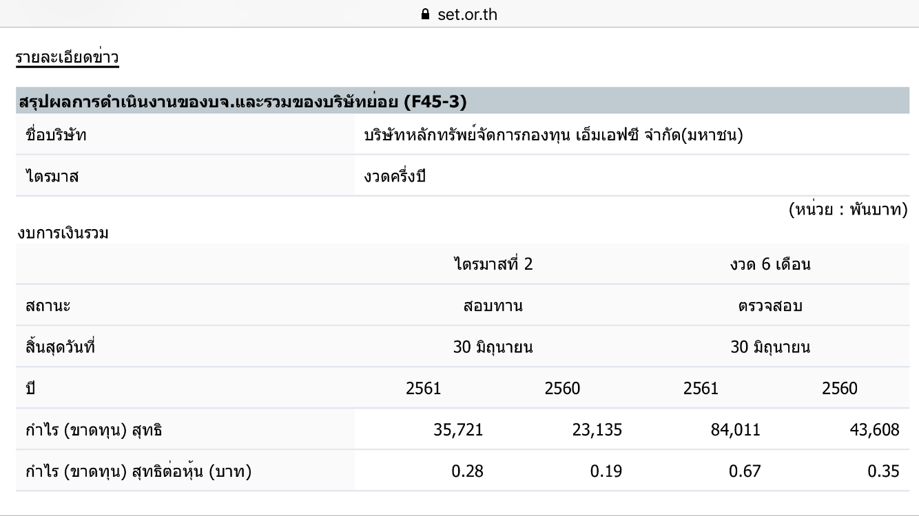 MFC ประกาศผลประกอบการ Q2/61