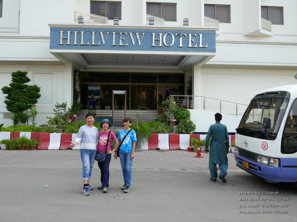 เครื่องการบินไทยออกหัวค่ำ ถึง Islamabad ค่ำแล้ว Land ที่ปากีสถานมารับไปที่พัก Hillview Hotel