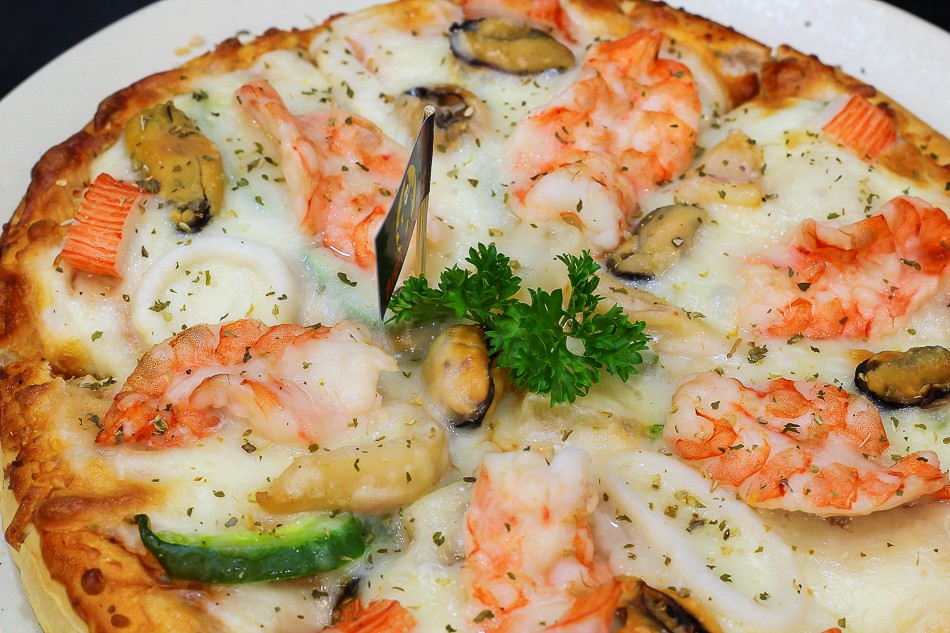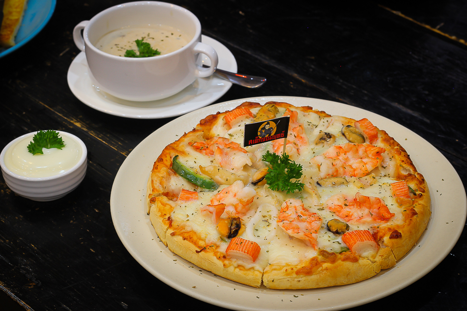 ส่วนเมนูนี้พิซซ่าแค่มองด้วยตาก็จะอิ่มอยู่แล้ว ขอบนุ่มแป้งหนามากเราทานเป็นหน้าซีฟู๊ดค่ะ ก็อยากกินอีกหลายหน้าแต่เท่านี้ก็จะทานกันไม่ไหวอยู่แล้ว